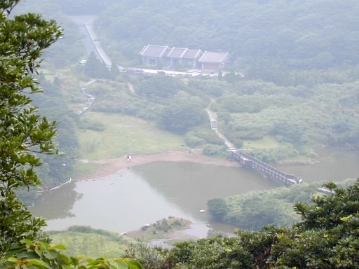 大屯山西峰山頂。西峰頂下望大屯坪。西峰頂遠望面天山。峰頂難得有樹蔭可以乘涼休息。 |