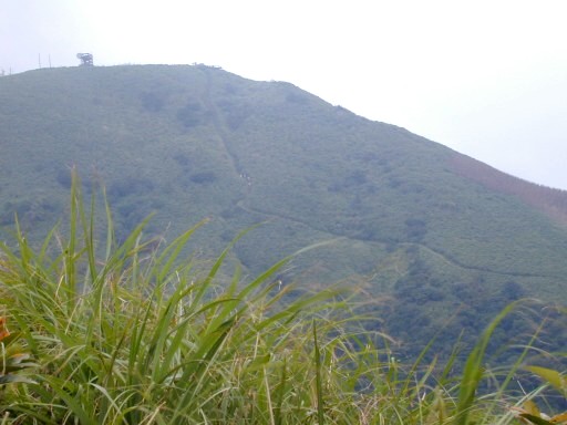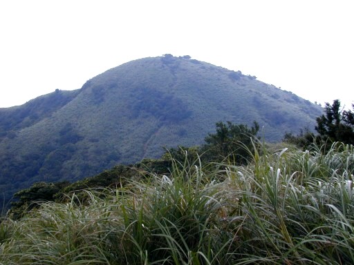 前途的景象一變為芒草徑。終於看見第一隻蝴蝶。遠望大屯山西峰。 |