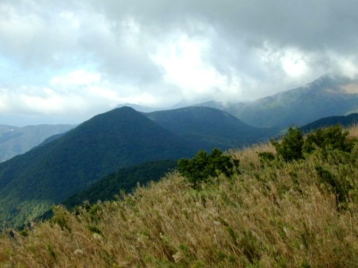下西峰的芒草徑。遠望中正山。不曉得哪個山頭算是中正山。 |