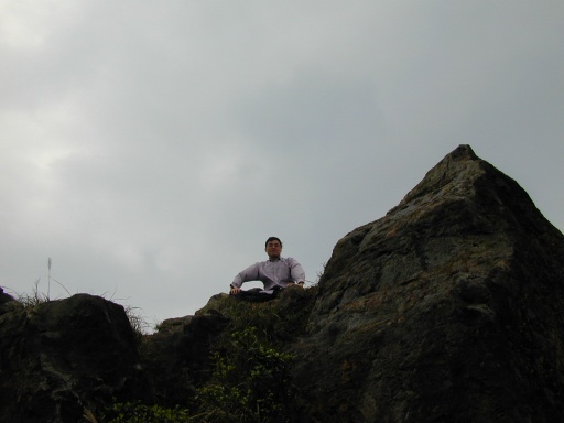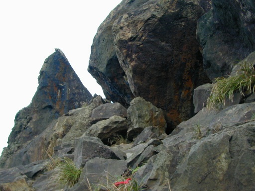 開始有點陡了。回頭看看燦光寮山。近看巨石。 |