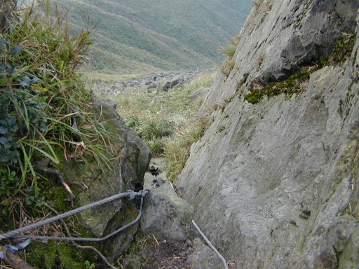 小段陡下芒草路。抓著芒草根步步為營。 |