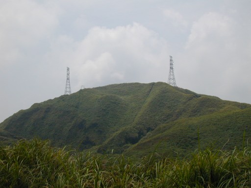 右側電塔。一路上沒有發現牡丹山基點或任何路條標示山頂。電塔旁有急陡下山路可直下。取右側小路回左側電塔休息。 |