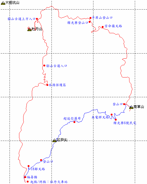 眺望燦光寮山。眺望南草山。和燦光寮山合照。 |
