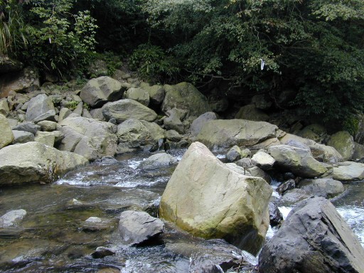 過溪,溪水豐沛,要跳石過溪而不沾濕鞋子,有點難度。安然到達溪右岸,續行。其實這附近是兩支流會流處,我只過了左股。 |