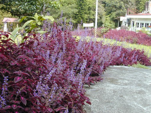 路旁彩葉草群集,雖是人工的,仍是美極了。遠眺逐鹿山卡保山。 |