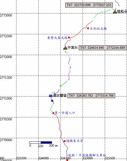平溪線嶺腳火車站旁眺望附近山巒。沿老街往滴水觀音。 |