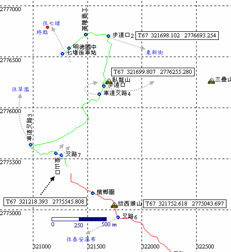 東新街小廟步道口。取左出七堵,經過基隆商工明德國中。 |