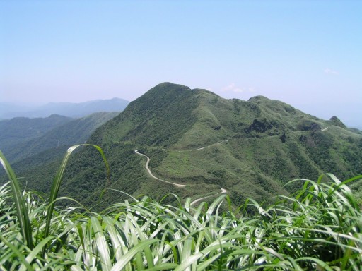 回到草山公路。原路退往燦光寮山半平山登山口。回頭眺望草山南峰南草山稜線。 |