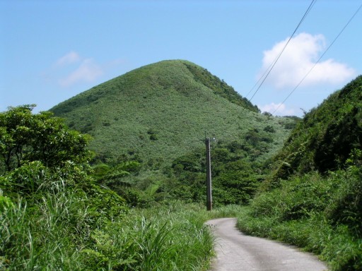 回到山下車道叉路口,續前行南草山產道,往登草山南峰。 |