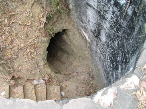 果然在廢土堆旁發現一水泥小徑往下。水泥小徑繞行於一座大墓園的圍籬外。 |