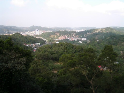 中途山頭,長著一些月桃。續行陡下。遠眺七堵地區。前方可見另一山頭,需要繼續陡下至鞍部,再陡上。H319m |