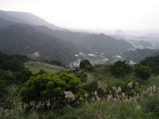出樹林,入芒草區,是一處廢棄的開發地,芒草並不算太茂密,通行不難。俯瞰汐平路附近。遠眺汐止地區。回望剛才的陡下坡,乃是開發所致。H211m |