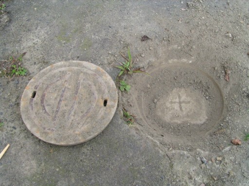 三腳木山頂,325m。又稱福音山或山豬窟山。基石位於教堂牆邊的圓鐵蓋裡面。附近剛好有雙竹筷,輕易地把鐵蓋翹起,可惜原本的土地調查局圖根點只能看到頂部的十字。H315m |