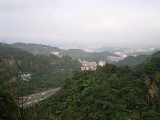 隨即接上研究院路三段281巷。繼續往下走。鑽過北二高底下。眺望十八羅漢山。H89m |