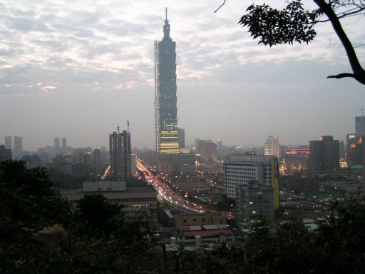 終於找到一處往左下的步道,而循稜前行已無步道。眺望101大樓附近初夜景。H85m |