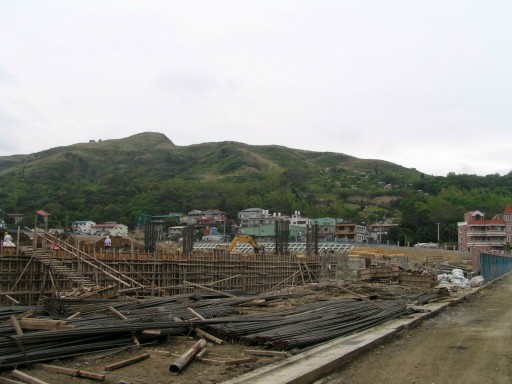 巷底。一座大溫室的左側有簡易階梯,主人告知上山請繞至屋後,此處並無登山路條。繞至溫室右後方,正在興建排水溝,原本的步道被截斷,通過仍不難。H24m |