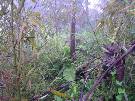 退回到攀繩陡上山路,連續攀繩陡上,陰雨天非常滑溜。H297m |