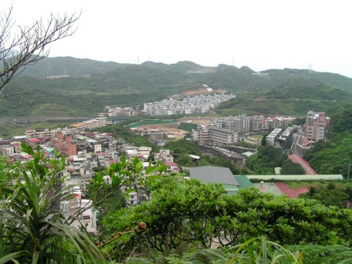 車道最高點附近。左側有小路陡上山頂平台。這個平台我本以為是九華山的山頂,可是找不到傳說中的基石。此處可俯瞰中和路附近的大型社區與北二高延伸路段。搜尋一陣子,還是只有找到基隆市政府控制點而已。H157m |