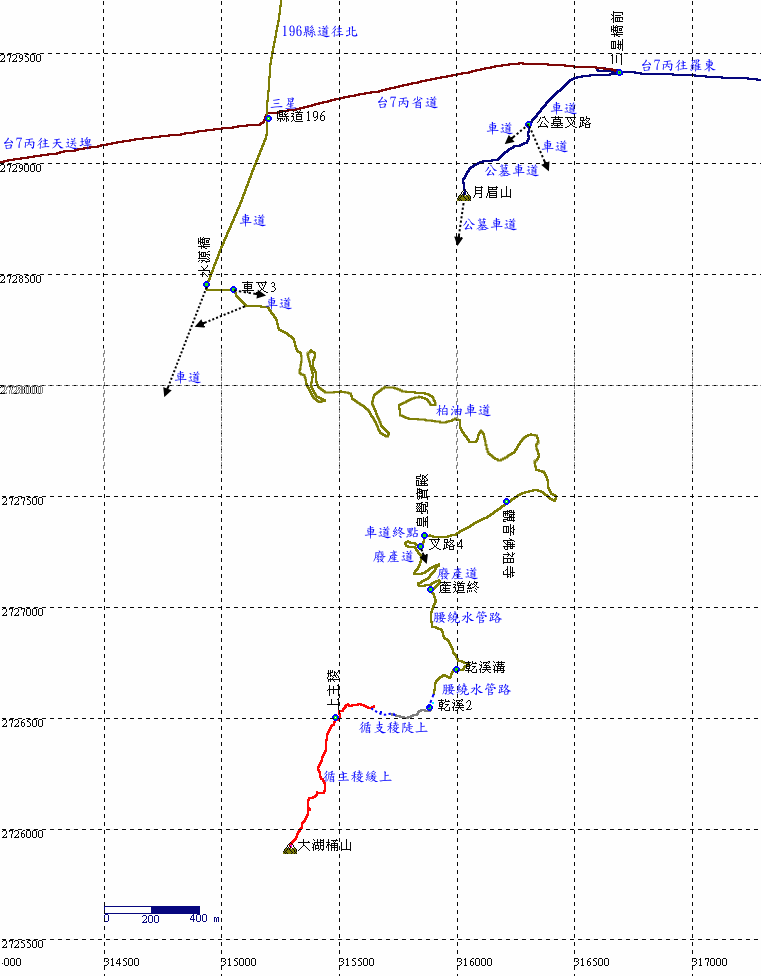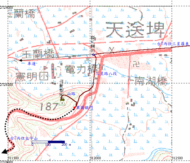 續行,原路回三星,穿越直行柑仔坑路,過水源橋左轉,隨即再右轉,此後一路上山。 |