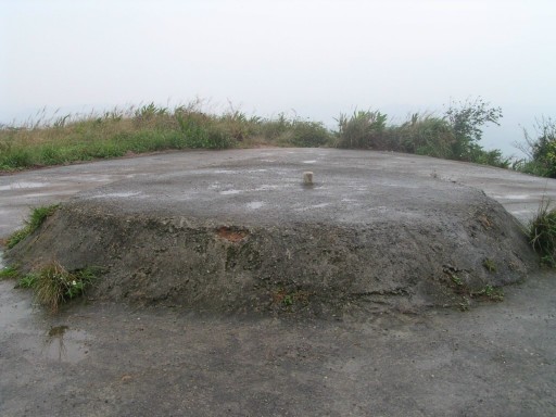 鳳岩山頂,235m,又稱蕃子窩山。有今天唯一見到的山頂標示牌,開路不到兩年,山路居然如此荒廢。台灣省政府圖根補點,基石處其實是在碉堡上,稍留意才能看出。樹林間無展望。H246m |
