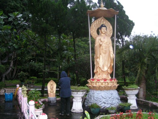 正覺寺,位於宜5鄉道7.xk路旁,靠近龍潭,廟前有金身大觀音像,石佛就在其旁,第卅一番,長命寺,聖觀世音。這樣說來,基隆月眉山之第卅一番石佛一定就在基隆長命寺,可惜已失落。宜蘭地區已發現的石佛剛好每座寺廟一尊,且似乎有地區順序,由南方澳開始,經羅東,轉三星,可能再經員山至宜蘭市,最後到達龍潭附近,最終的卅三番會在龍潭湖畔或礁溪嗎?待續。循宜5鄉道至礁溪搭火車回。H13m |