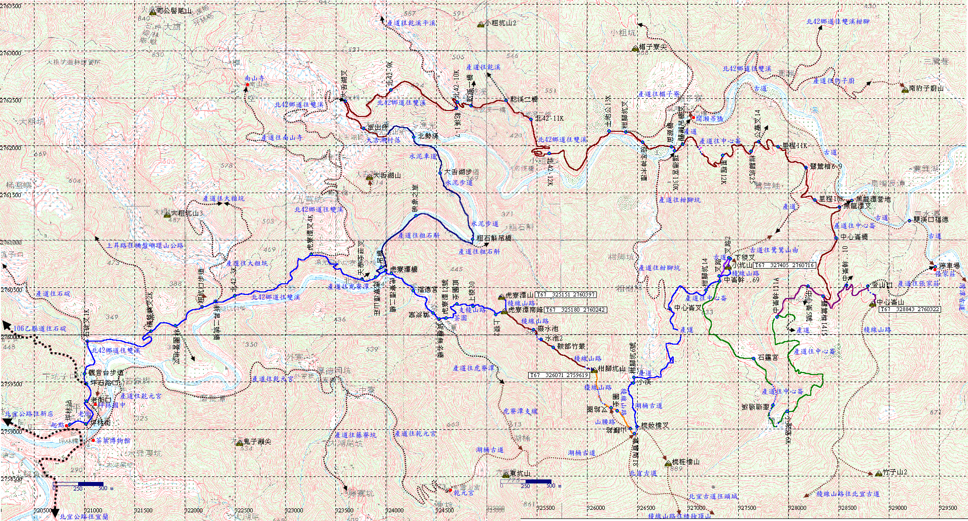回到登山口,由於進度落後很多,不得不放棄翻山越嶺至頭城梗枋的計畫,而最快的撤退路線是,走長約20公里的產道回坪林。H561m |