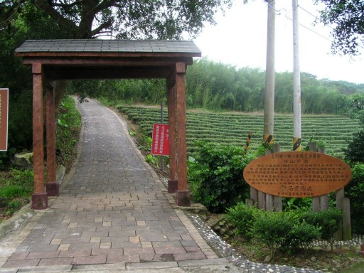茶山步道入口,位於雲頂製茶廠旁,除了喫茶,還有手工粿。茶山步道寬約3-4公尺,沿途有很多茶園,它應該是從以前的農用車道改裝而成的,無階梯。茶山步道全長1公里,至鄧麗君墓園1.6公里。今天都沒遊客,只有一條大蚯蚓在步道上努力爬行。眺望頂草埔尾山。步道沿途的地面上有各種茶的簡介。步道一路往上,中途偶與小溪貼近,水流清淺。H176m |