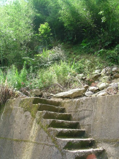 09:31 磨婆寮山登山口,位於逮魚堀1號民宅左側階梯往上,農路相當好走。 |