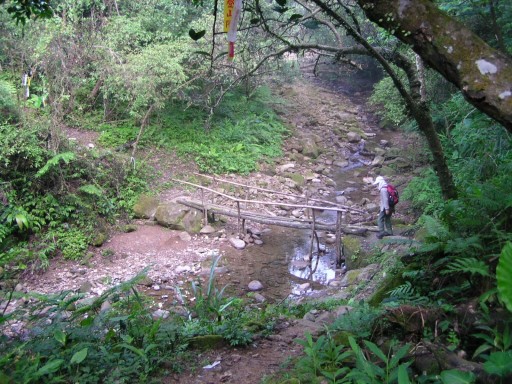 鋼骨木橋,跨過溪溝,這座是新的,上次來時舊橋已全毀很難走。H239m |