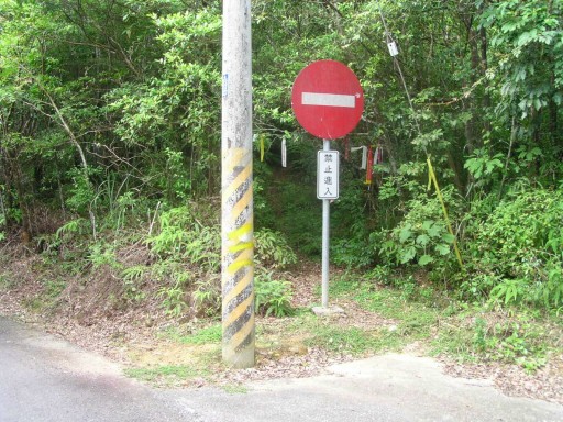 打鐵寮山登山口,三叉坑高分410電線桿,入口處剛好有個「禁止進入」的警告牌,路條頗多,非常顯眼。休息。H446m |