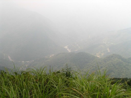 12:06 拔刀爾山展望極佳,可惜今日陰霾,逐鹿山、波露山、大保克山都藏在雲霧裡,僅能勉強俯瞰山下的羅好水壩與信賢國小。 |