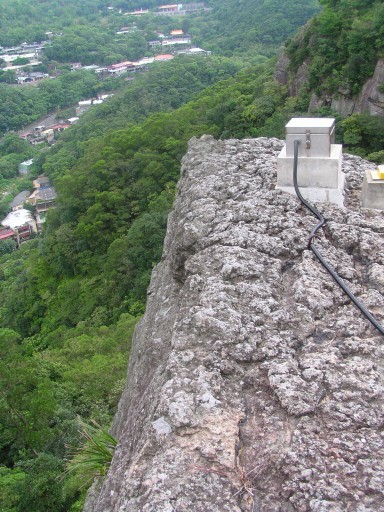 軍艦岩,188m,北市「市481」不鏽鋼標基點,嵌在巨岩最頂端。展望絕佳,遠眺紗帽山、文化大學,俯瞰石牌地區,有一條步道可直下石牌榮總院區。H186m |