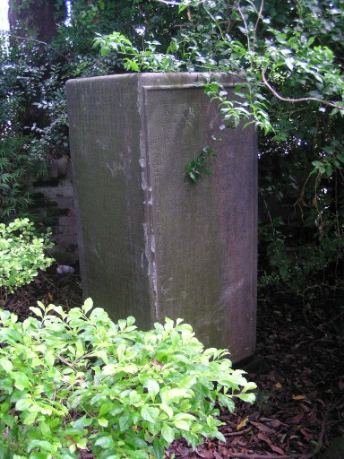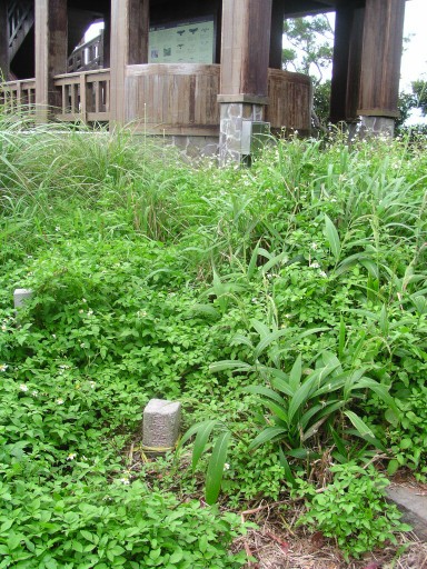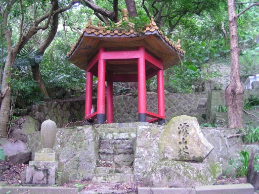 涼亭,附近有很多其他類的基座,非石佛所有。涼亭前有兩個石碑,右碑寫著:「※山塔」,有個水部的字猜不出。左碑寫著:「當山開祖醇領和尚」,這裡應該是大慈寺開山祖師的埋骨之所。旁邊還有座昭和年間的蔡氏墓。H350m |