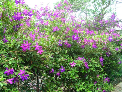 步道第二次穿越登山路。步道旁發現一大叢人家種的紫野牡丹。H190m |
