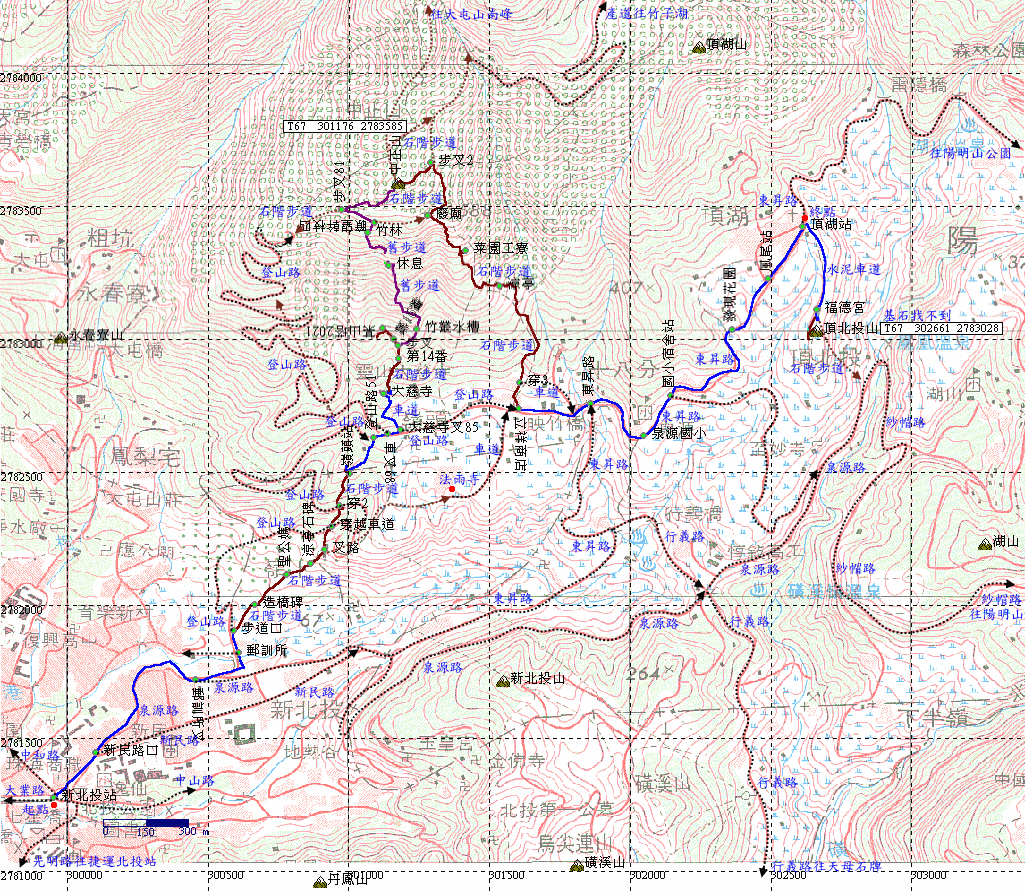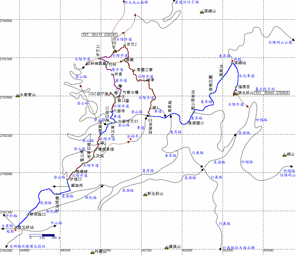 捷運新北投站,與山友marketer會合,循著站前的泉源路往中正山,中途遇新民路不取。H28m |