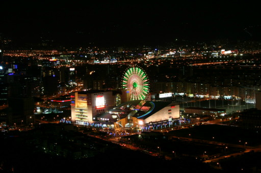 靜修宮,有車道通往劍南路,廟前展望的確是不錯,距離美麗華夠近,可惜有電線橫過,稍稍破壞畫面。請出三腳架拍美麗華夜景。今晚美麗華摩天輪每隔一段時間會開始變換顏色,果然是美輪美奐。H96m |