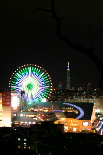 劍南路大轉彎處,美麗華摩天輪與台北101再度並肩而立,只是左右互調,角度也不錯。H52m |