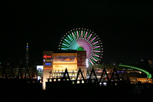 22:16 劍南路旁觀景點拍美麗華與台北101夜景,0與1並立。 |