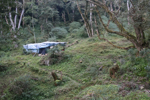 工寮,附近發現很多山葵,但似乎已久無人管理。續行的山路仍持續腰繞緩上。H2018m |