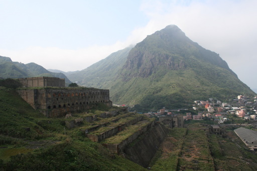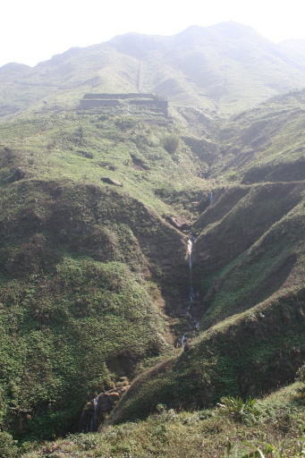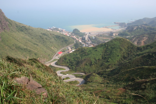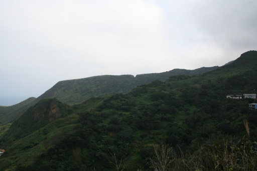 續行,原路退下山。回程雲霧稍散,展望漸佳,也許我該多等一會兒。俯瞰金瓜石地區,俯瞰九份地區。 |