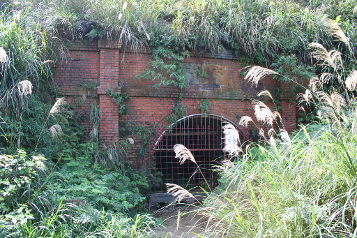 續行,轉為車道,不久路右有座廢棄建築,並發現附近有個礦坑,往探,原來是隧道,可以望見另一端的出口。退回。 |