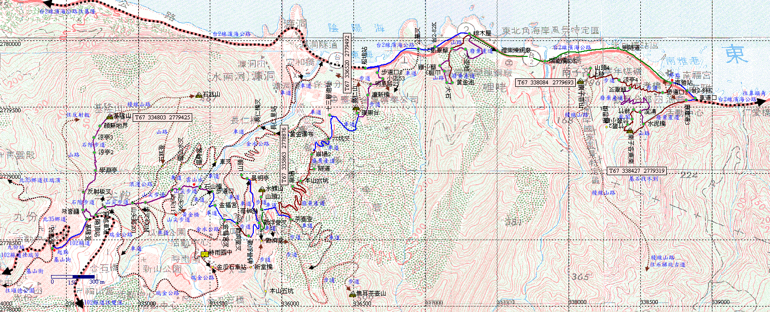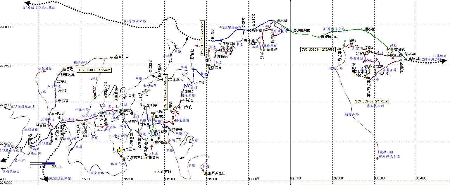末段接近登山口,左切回原路,再下登山口,然後續行濱海公路往宜蘭方向。H15m |