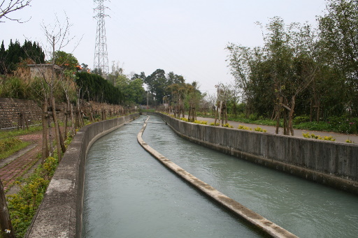 出發,石門大圳左側為車道,右側為步道,走右側。沿途都是種櫻花,不過枝幹稀疏,實在不適合稱為隧道。無遮蔽。 |