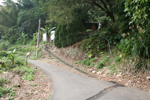 古道口之二,窄窄的水泥步道上往一座土地公廟,清福祠。續行仍是古道,一路往上。H208m |