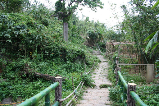 中正山步道口,有塊「法雨寺由此石徑進」石碑。一開始是小巷,隨即轉為石階步道。H75m |