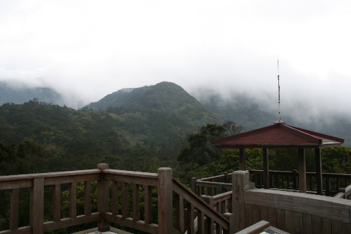 涼亭,休息。這附近就是大屯坪,霧雨中迷濛的山谷。H869m |