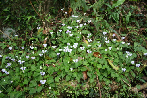 步道叉路,左往第一登山口,右下往第二登山口,右路因嚴重坍方封閉中,取左。此後的步道仍一路往上,但沿途有不少可愛的小野花。H648m |