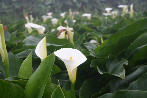 車道叉路,左下往竹子湖,直行往中正山,取左。稍後竹子湖路兩側出現海芋田,到處都是海芋,蔚為奇觀。H687m |