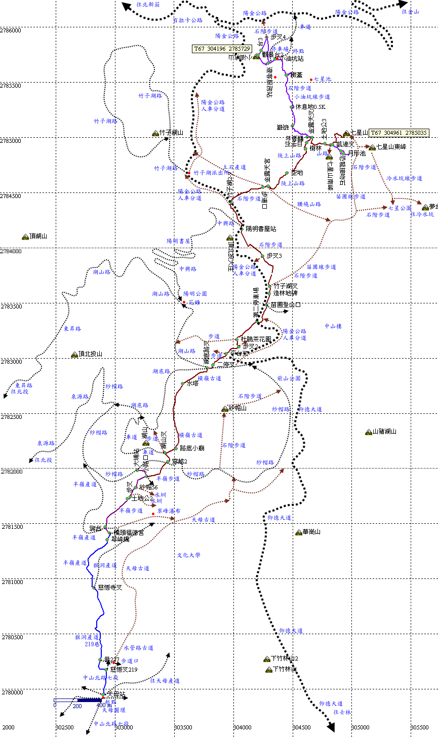 續行。俯瞰竹子湖。 |