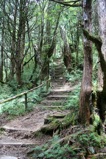 鐵杉林國家步道入口,續往上,轉為原木階梯步道,較為原始自然。H1995m |